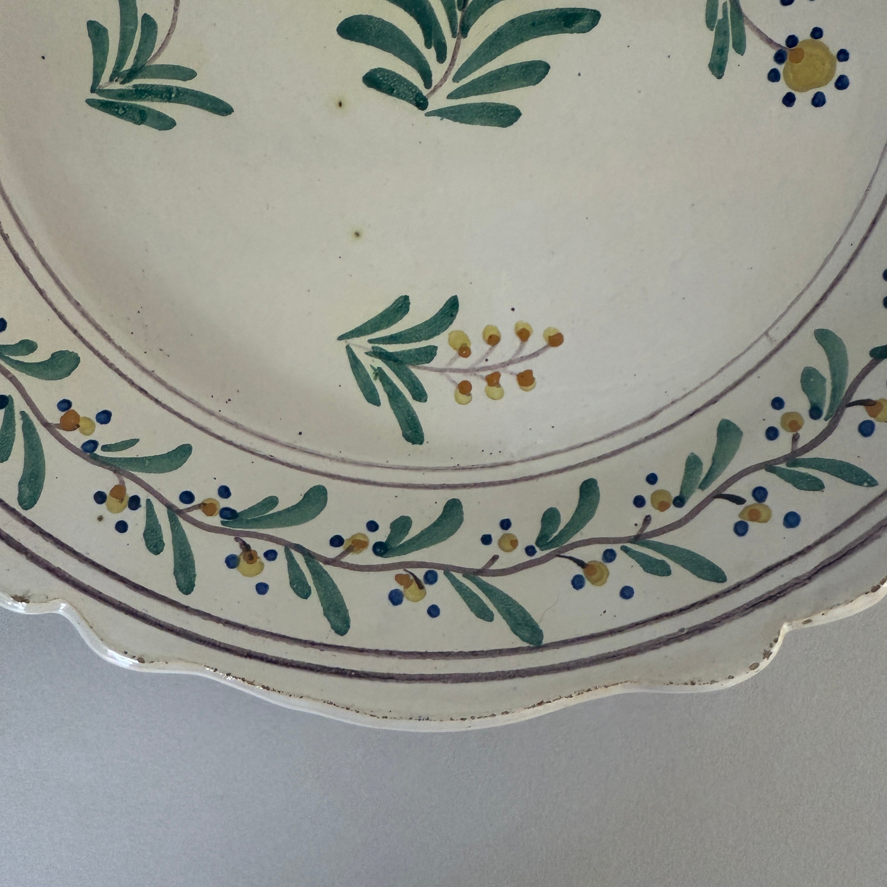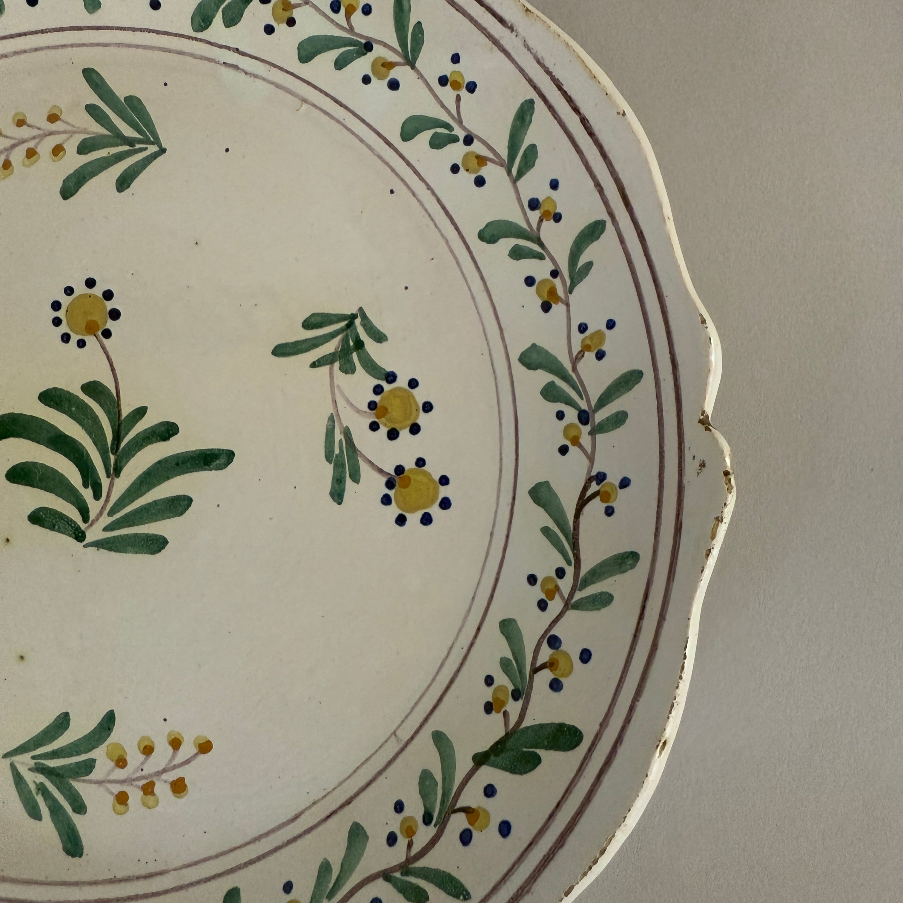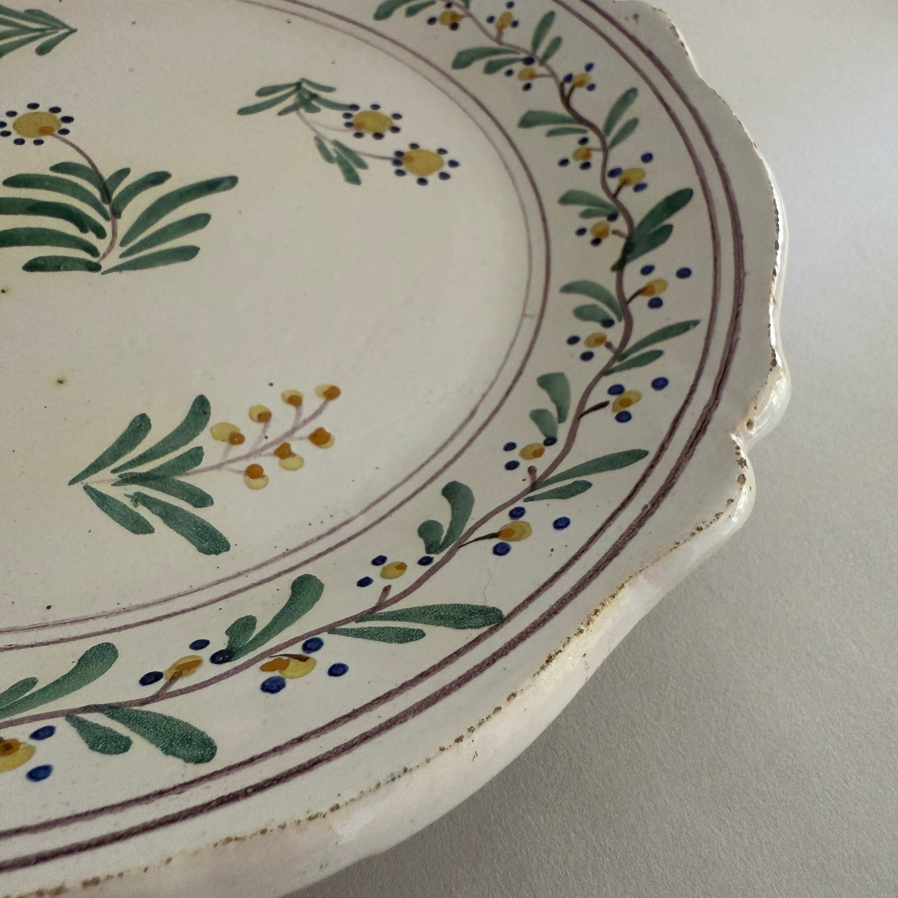 The softly shaped rim, reminiscent of rose petals, gives the plate the gentle and rounded character typical of traditional faience.