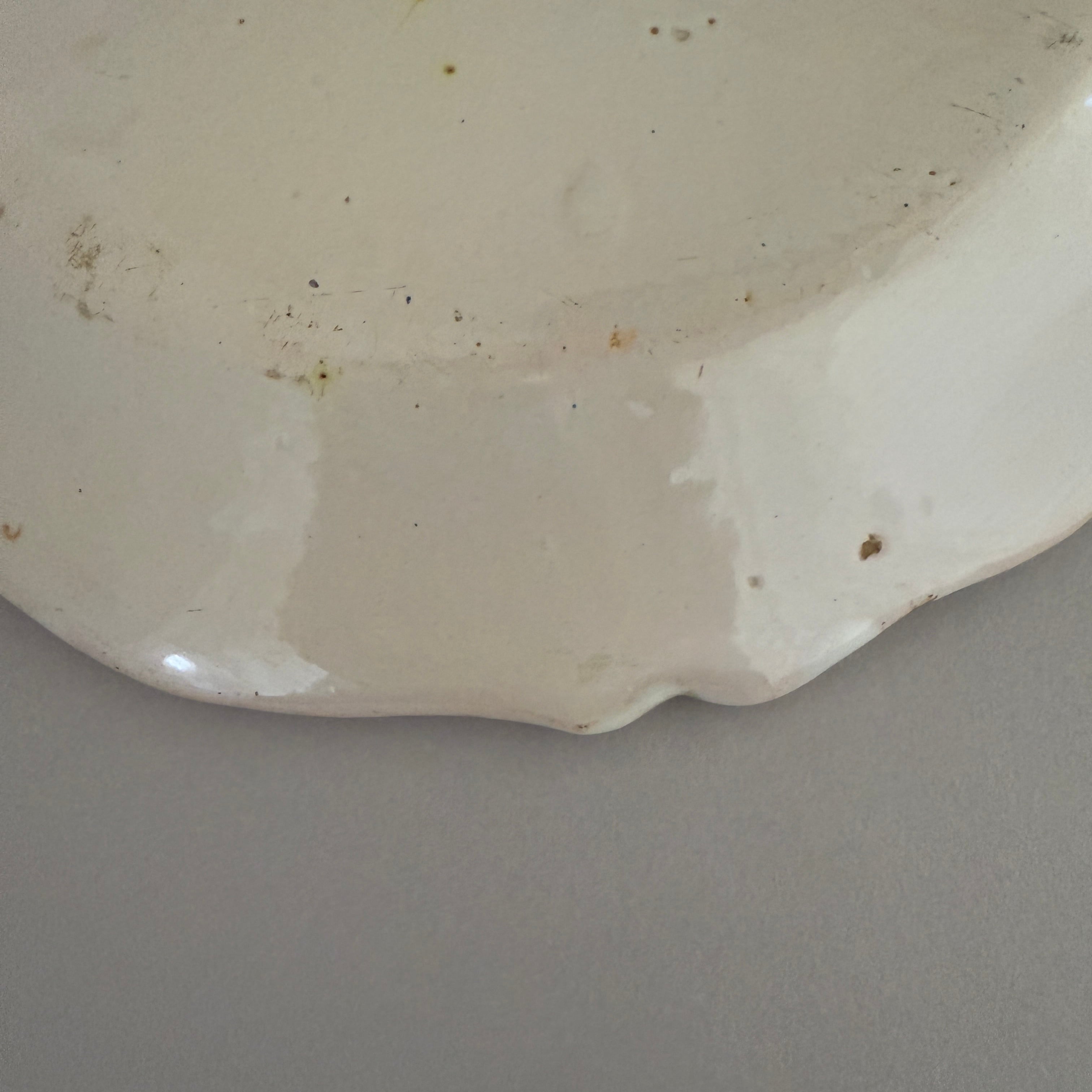 Considering its age, the plate remains in good condition with no major damage. Minor surface wear and small stains consistent with age can be seen.