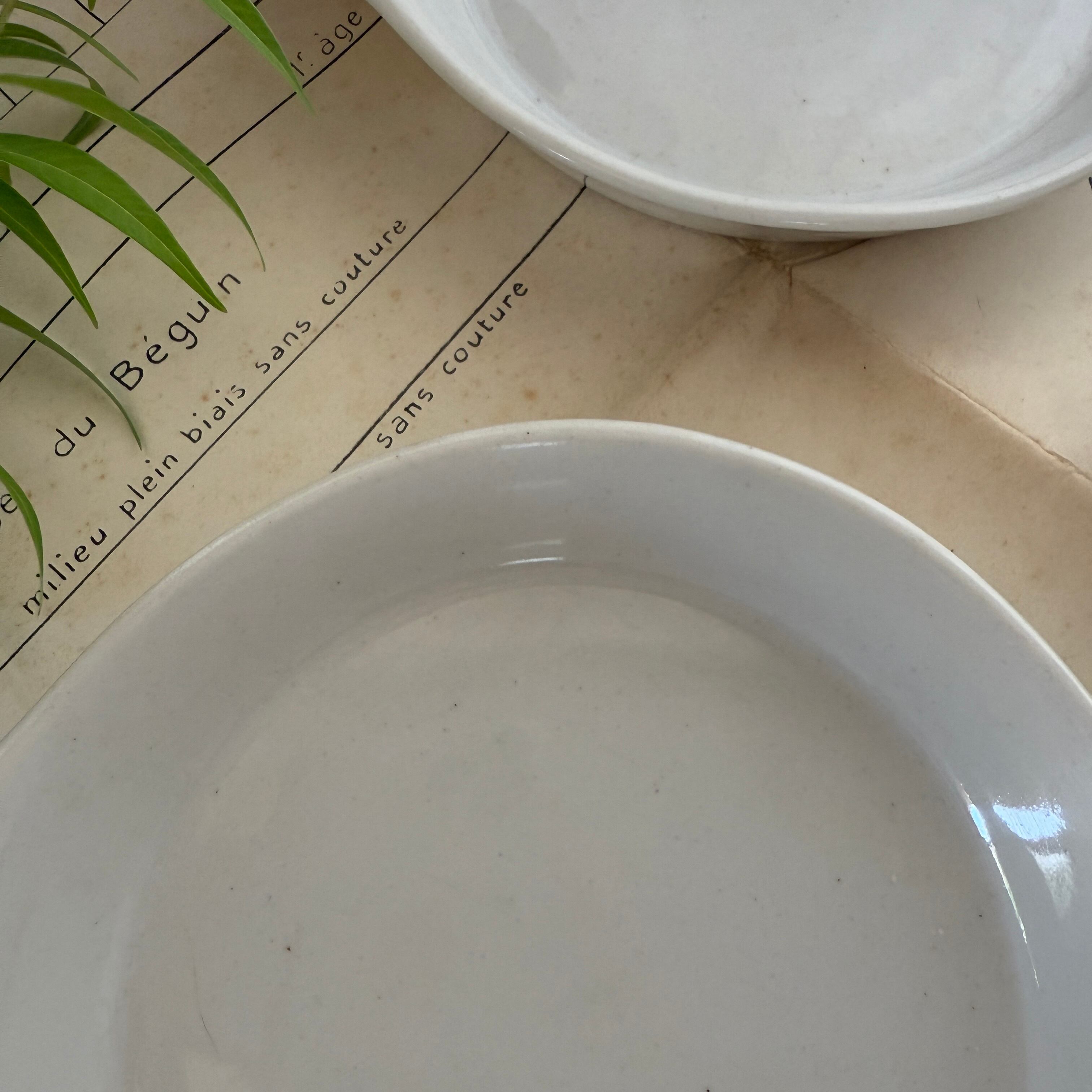 【French Porcelaine Gratin Dish Set of Two c.1900-1940/フランス製 白磁のグラタン皿2枚セット 1900-1940年代頃】