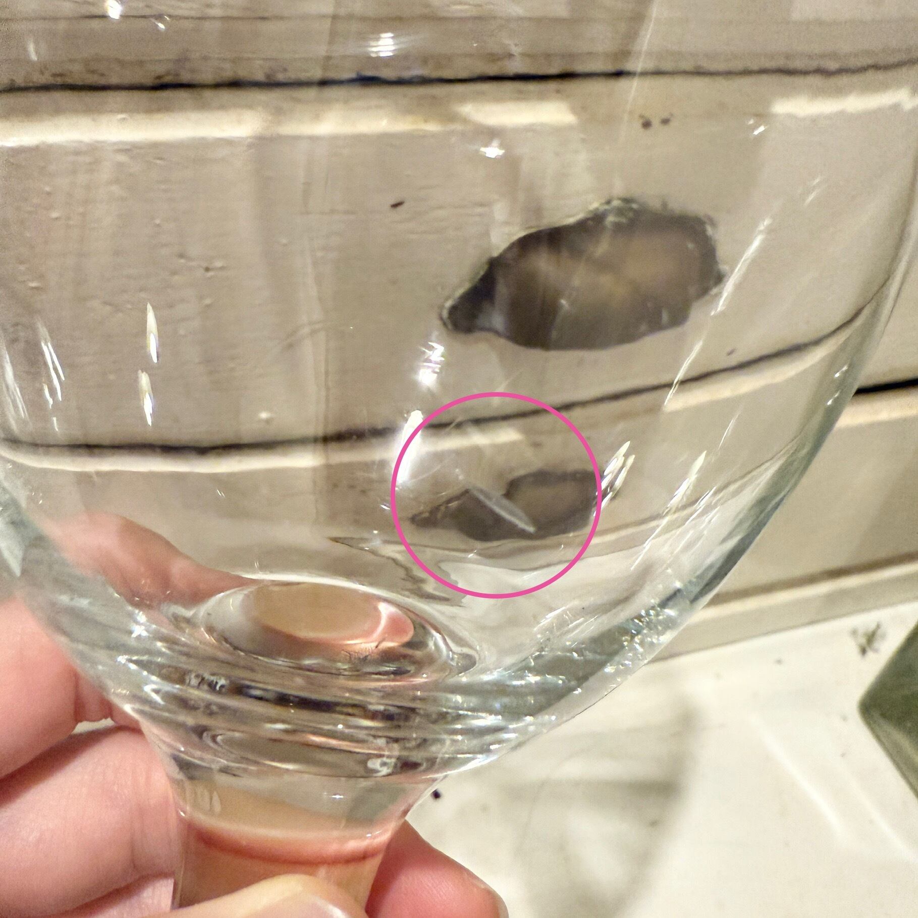 1箇所内側に小さなへこみ(ガラスの揺らぎか気泡のようなもの)がありますが、特に支障はなくご使用いただけます。
