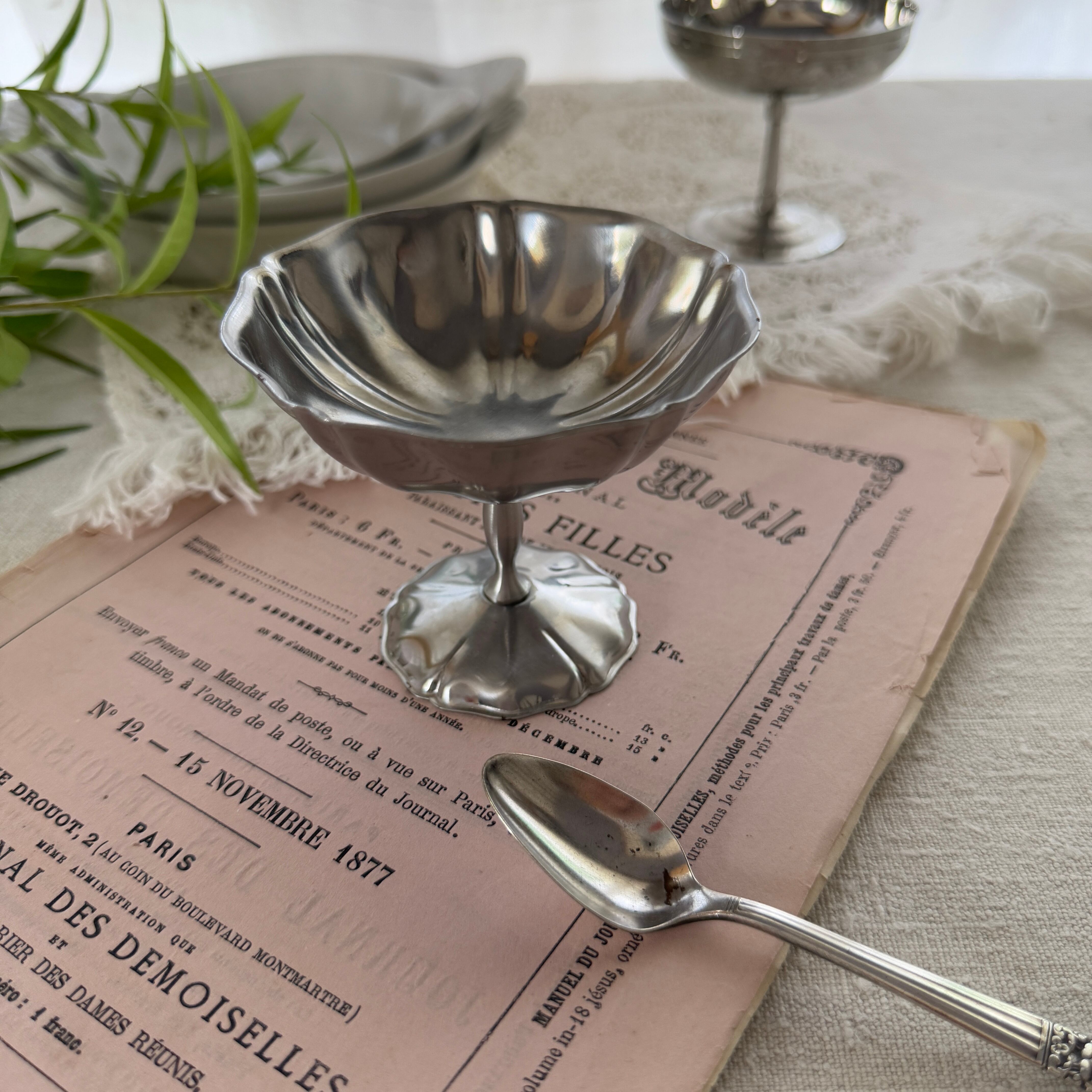 【1940~50年代フランスのステンレス製のカフェのアイスクリームカップ/1940–50s French Vintage Stainless Steel Ice Cream Cup】