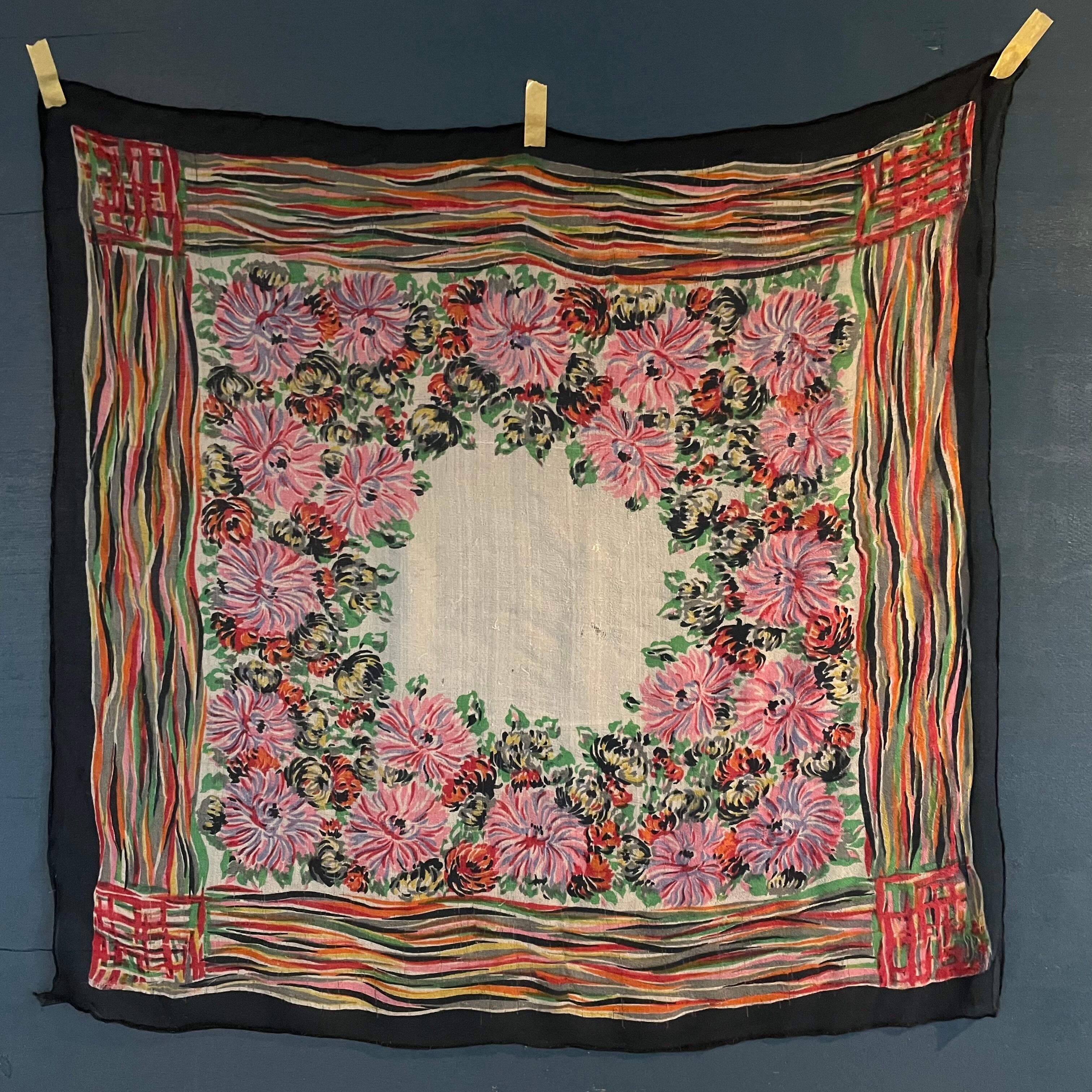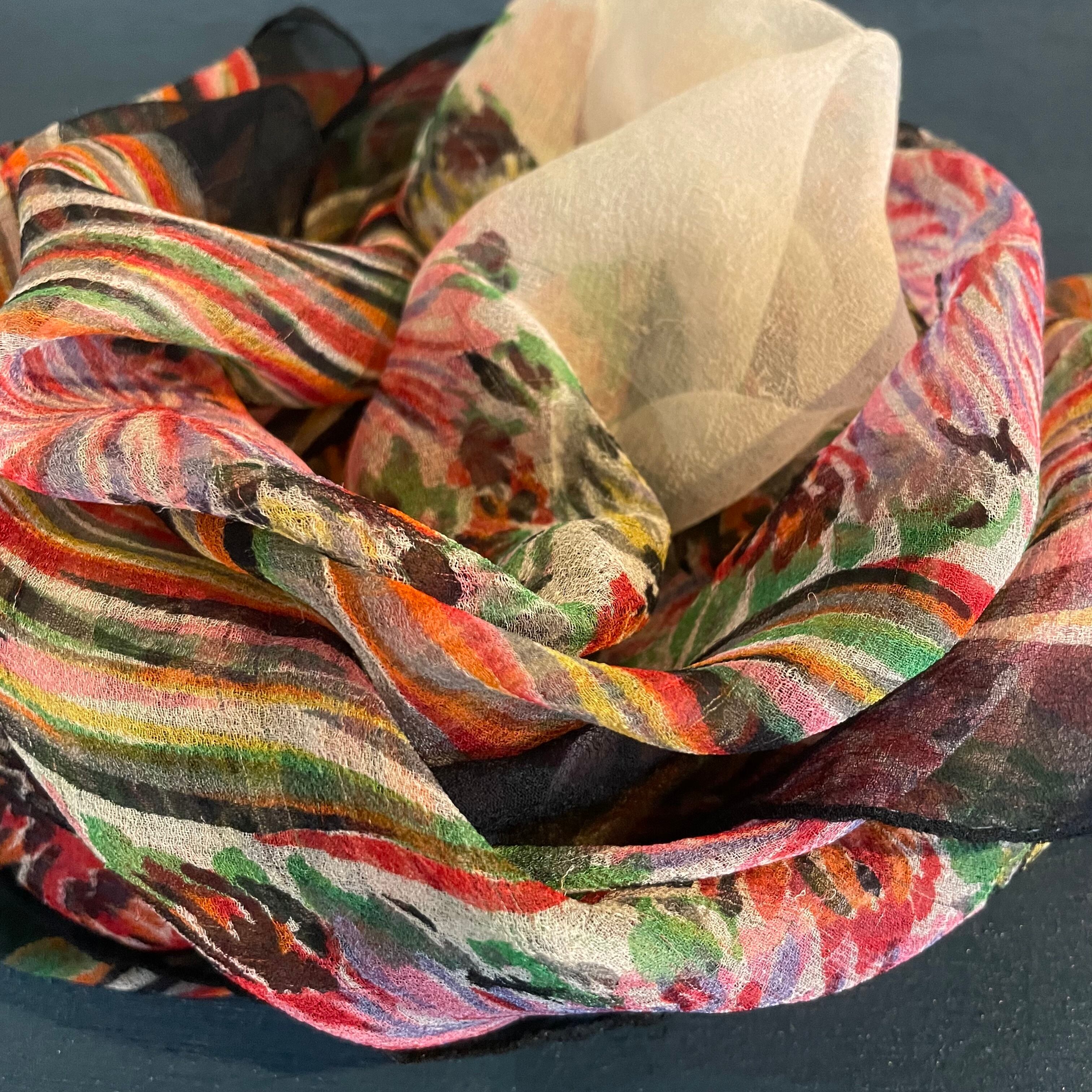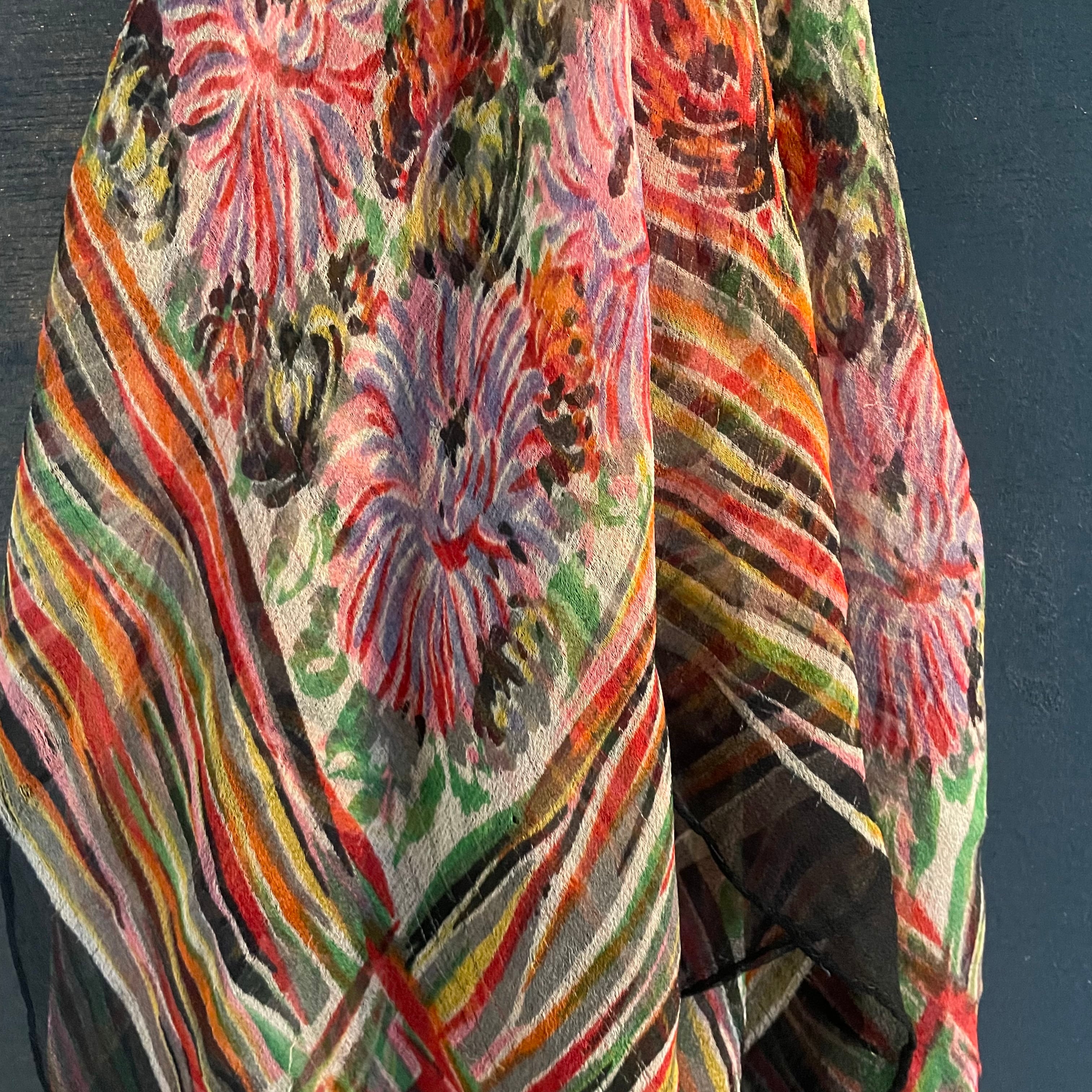 ビビットな色鮮やかな色彩の花柄シルクシフォンスカーフです。