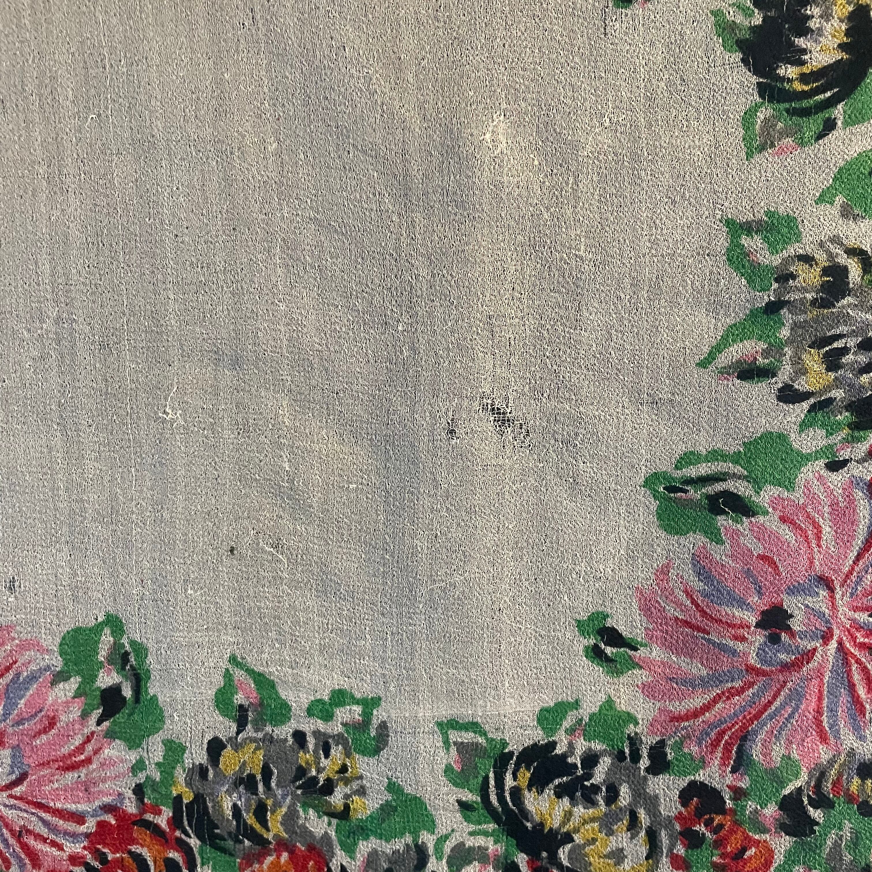 Flower Printed Silk Chiffon Scarf